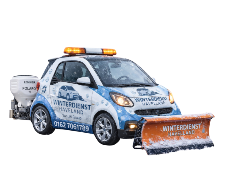 Mit kompakten Fahrzeugen sorgen wir lokal für sichere, geräumte Wege, Zufahrten und Parkflächen bei Schnee und Glätte.
